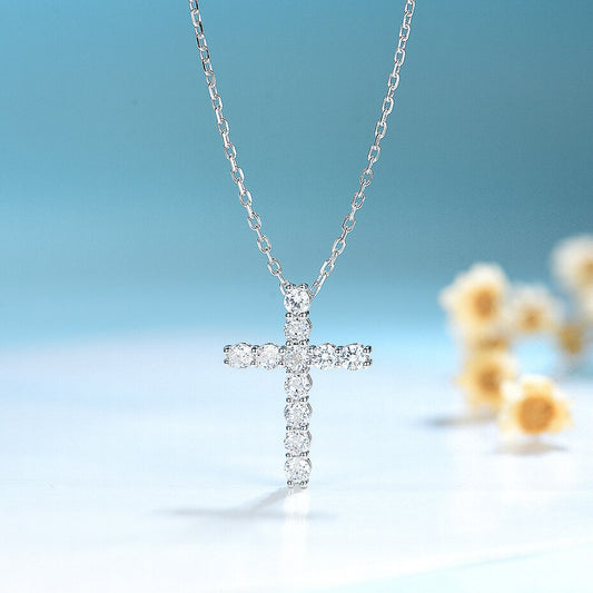 Baeful 925 Sterling Silver Cross Moissanite Necklace